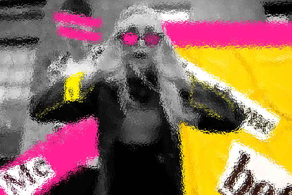 Abstract art, collage with female portrait and mountains, generative ai